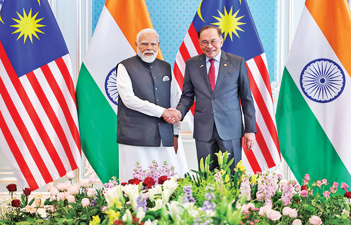 વડાપ્રધાન નરેન્દ્ર મોદી બે દિવસ માટે મલેશિયાની મુલાકાતે છે, તેમની આ મુલાકાત ભારત-મલેશિયાની વ્યાપક રણનીતિક ભાગીદારીને આગળ વધારવાની દીશામાં એક મહત્વપૂર્ણ પગલુ માનવામાં આવે છે. વાતચીતમાં વેપાર, રોકાણ, સેમિકન્ડક્ટર, સંરક્ષણ, સુરક્ષા, સમુદ્રી સહયોગ, ઉર્જા, પર્યટન, સાંસ્કૃતિક આદાન પ્રદાન, ડિજિટલ અને નવી ટેક્નોલોજીના ક્ષેત્ર પર ચર્ચા થઇ હતી. મોદીની આ મુલાકાત દરમિયાન બન્ને દેશો વચ્ચે કેટલાક એમઓયુ થયા છે જેમાં સુરક્ષા સહયોગ, સંયુક્ત રાષ્ટ્ર શાંતિ મિશનોમાં ભાગીદારી, સેમિકન્ડક્ટર વિકાસ, સ્વાસ્થ્ય અને આરોગ્ય, ઇમર્જન્સી સર્વિસ અને ભ્રષ્ટાચાર વિરોધી સહયોગ સામેલ છે.