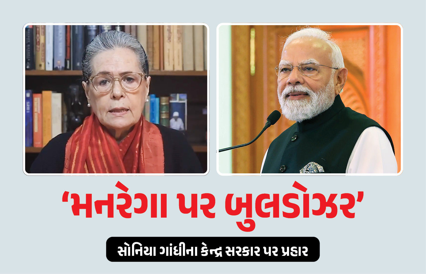 Sonia Gandhi Attack Central Government on MNREGA : કેન્દ્ર સરકારે દેશની સૌથી મોટી ગ્રામીણ રોજગાર યોજના MNREGAનું નામ બદલીને ‘વિકસિત ભારત ગેરંટી ફોર રોજગાર ઍન્ડ આજીવિકા મિશન (ગ્રામીણ) 2025’ એટલે કે 'VB-G RAM G' (જી રામ જી) કરી નાખતા વિપક્ષને વાંધો પડ્યો છે. કોંગ્રેસે કહ્યું છે કે, આ માત્ર નામ બદલવાનો મામલો નથી, પરંતુ કામનો હક્ક આપતી રોજગાર ગેરંટી યોજનાની આયોજનપૂર્વક હત્યા કરવામાં આવી રહી છે. સંસદમાં જી રામ જીનું બિલ લવાતાં જ વિપક્ષે સંસદથી લઈને રસ્તા પર વિરોધ નોંધાવ્યો હતો. ત્યારે હવે કોંગ્રેસના પૂર્વ અધ્યક્ષ સોનિયા ગાંધીએ પણ મનરેગા મામલે એક વીડિયો સંદેશ જાહેર કરી કેન્દ્ર સરકાર પર આકરા પ્રહારો કરતાં વડાપ્રધાન મોદીની નીતિઓની ટીકા કરી છે.