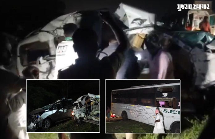 National News: બુધવાર, 24 ડિસેમ્બરની રાત્રે સરકારી બસ સાથ બે વાહનોની ટક્કર થતાં સાત લોકોના મોત થયા છે. પોલીસના જણાવ્યા અનુસાર બસનું ટાયર ફાટતાં આ ભીષણ અકસ્માત સર્જાયો હતો. ટાયરમાં બ્લાસ્ટ થતાં જ બસ રોડની વિરુદ્ધ દિશામાં જતી રહી હતી જ્યાં બે વાહનો એક SUV અને એક કાર સાથે અથડાઈ ગઈ હતી. જેમાં સાત લોકોના કાળને ભેટયા છે જ્યારે અન્ય ઈજાગ્રસ્તોની હોસ્પિટલમાં દાખલ કરવામાં આવ્યા છે.