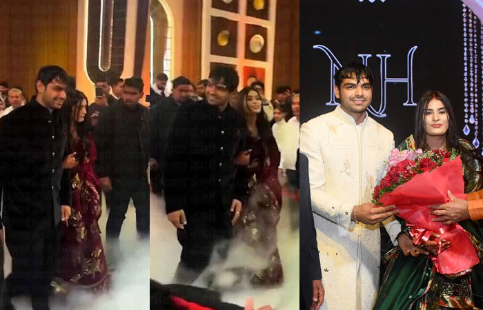 નીરજ-હિમાનીના રિસેપ્શનમાં એન્ટ્રીનો પહેલો વીડિયો પણ સામે આવ્યો છે. નીરજ ચોપરાએ જ્યાં ઇન્ડો-વેસ્ટર્ન ડ્રેસ પહેર્યો છે, જ્યારે હિમાનીએ મૈરૂન કલરનો ડિઝાઈનર લહેંગા-ચોલી પહેરી હતી. નીરજ અને હિમાનીના લગ્નનો વીડિયો પણ બતાવવામાં આવ્યો હતો. સ્ટેજ પર ઉભા રહીને નીરજ અને હિમાની એકબીજાના હાથ પકડીને મગ્ન જોવા મળ્યા હતા.