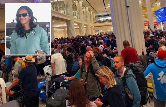 PV Sindhu Stranded in Dubai Airport: ઈરાન-ઈઝરાયલ યુદ્ધને કારણે વિશ્વભરની પરિસ્થિતિ ઝડપથી બદલાઈ રહી છે. હવાઈ મુસાફરી સંપૂર્ણપણે ઠપ્પ થઈ ગઈ છે, જેના કારણે ઘણાં દેશોના એરપોર્ટ પર લોકો ફસાયેલા છે. ભારતની બે વખતની ઓલિમ્પિક મેડલ વિજેતા શટલર પીવી સિંધુ પણ શનિવારે ઈંગ્લેન્ડના બર્મિંગહામ જઈ રહી હતી ત્યારે દુબઈ એરપોર્ટ પર ફસાઈ ગઈ હતી. પીવી સિંધુએ પોતે સોશિયલ મીડિયા પ્લેટફોર્મ X પર આ માહિતી શેર કરી હતી.