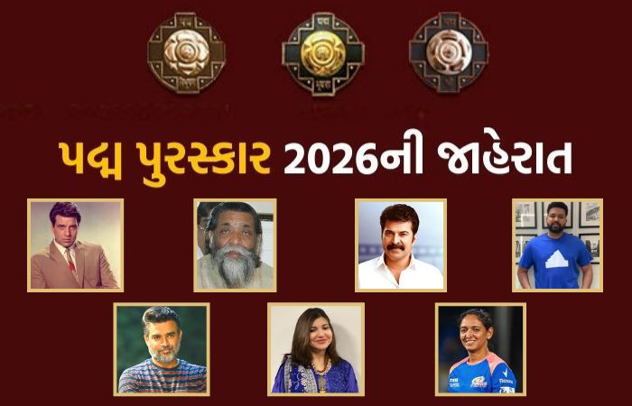 Padma Awards 2026: ભારતના 77માં પ્રજાસત્તાક પર્વની પૂર્વસંધ્યાએ કેન્દ્ર સરકાર દ્વારા વર્ષ 2026ના પ્રતિષ્ઠિત 'પદ્મ પુરસ્કારો'ની જાહેરાત કરાઈ છે. વર્ષ 2026માં કુલ 131 હસ્તીઓને પદ્મ પુરસ્કારો અપાશે, પુરસ્કાર મેળવનારાઓમાં 19 મહિલાઓ, 6 વિદેશીઓ/NRI/PIO/OCI અને 16 વ્યક્તિઓને મરણોત્તર સન્માન આપવામાં આવ્યું છે. પ્રજાસત્તાક દિવસની પૂર્વ સંધ્યાએ નામોની જાહેરાત થાય છે, સામાન્ય રીતે માર્ચ કે એપ્રિલ મહિનામાં રાષ્ટ્રપતિ ભવન ખાતે આયોજિત સમારોહમાં રાષ્ટ્રપતિ દ્વારા આ સન્માન એનાયત કરવામાં આવે છે.