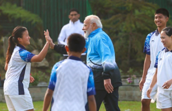 રાજધાની ગંગટોકમાં સવારના સમયે PM મોદીએ સ્થાનિક યુવાનો અને બાળકો સાથે ફૂટબોલ રમતા જોવા મળ્યા હતા. સોશિયલ મીડિયા પર આ તસવીરો શેર કરતાં તેમણે લખ્યું કે, ગંગટોકની એક સુંદર સવાર, સિક્કિમમાં મારા નાનકડા દોસ્તો સાથે ફૂટબોલ રમવાની મજા જ કંઈક અલગ છે! PMએ આ સેશનને અત્યંત યાદગાર અને જોરદાર ગણાવ્યું હતું.
