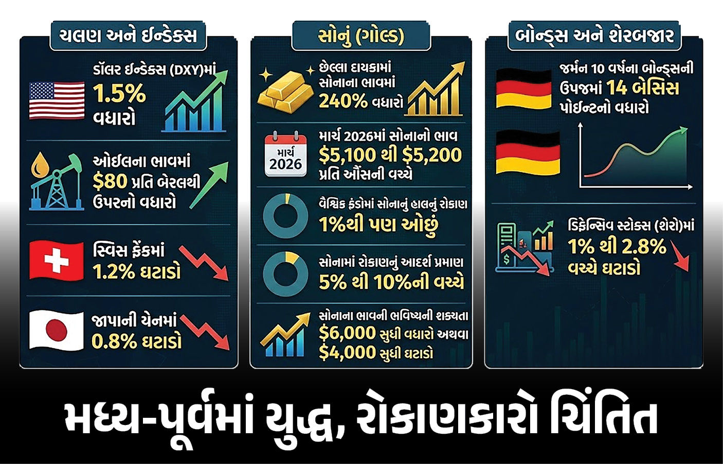 US-Israeli War With Iran : મધ્ય-પૂર્વમાં વધી રહેલા યુદ્ધને કારણે રોકાણકારોમાં ફરી ચિંતા વધી છે. આ પરિસ્થિતિમાં લોકો વિચાર કરે છે કે પોતાના પૈસા ક્યાં રોકવા વધુ સુરક્ષિત રહેશે. સામાન્ય રીતે ડૉલર, બોન્ડ્સ અને સોનું સુરક્ષિત વિકલ્પ ગણાય છે, પરંતુ આ વખતે ત્રણેયની સ્થિતિ થોડી જુદી છે. શું છે તેના કારણો એ વિશે સરળ ભાષામાં સમજીએ.