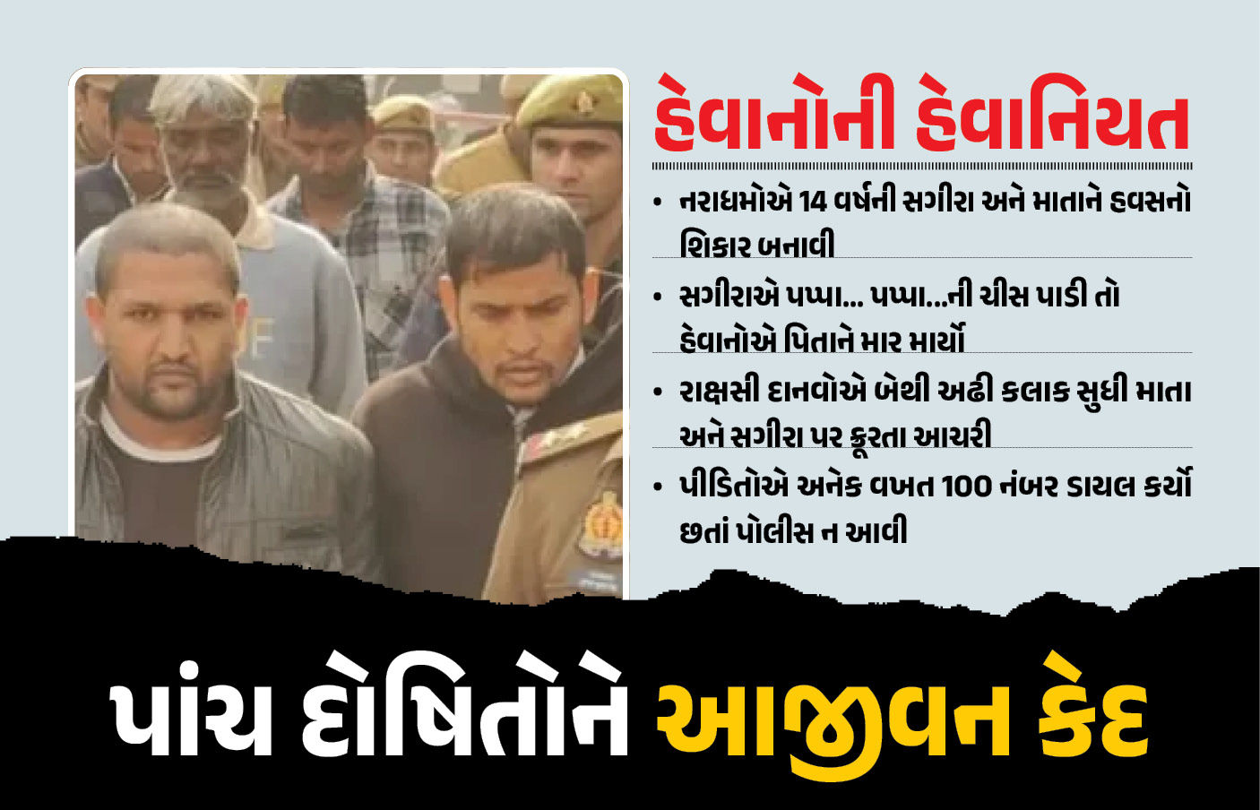 રિપોર્ટ મુજબ, હેવાનોએ પહેલા 14 વર્ષની સગીરાને હવસનો શિકાર બનાવી હતી. સગીરાએ પપ્પા... પપ્પા.ની ચીસ પાડતા નરાધમોએ પિતાને માર માર્યો હતો. આ રાક્ષસી દાનવોએ બેથી અઢી કલાક સુધી માતા અને સગીરા પર ક્રૂરતા આચરી હતી. ત્યારબાદ પીડિતોએ અનેક વખત 100 નંબર ડાયલ કર્યો હતો, તેમ છતાં પોલીસ પહોંચી ન હતી.