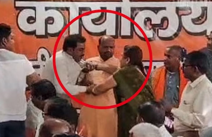 માહિતી મુજબ, ભાજપ કાર્યાલયમાં પદાધિકારીઓના સન્માન માટે એક કાર્યક્રમ યોજાયો હતો. મંચ પર નેતાઓનું સ્વાગત ચાલી રહ્યું હતું, ત્યારે જ એક મહિલા તેના પુત્ર સાથે ત્યાં પહોંચી હતી. પ્રત્યક્ષદર્શીઓના જણાવ્યા અનુસાર, મહિલાએ કોઈ પણ ખચકાટ વગર સીધા મંચ પર જઈને પદાધિકારીનો કોલર પકડી લીધો અને પૈસા હડપ કરવાનો આરોપ લગાવતા જોરદાર ઝાપટ મારી દીધી હતી.