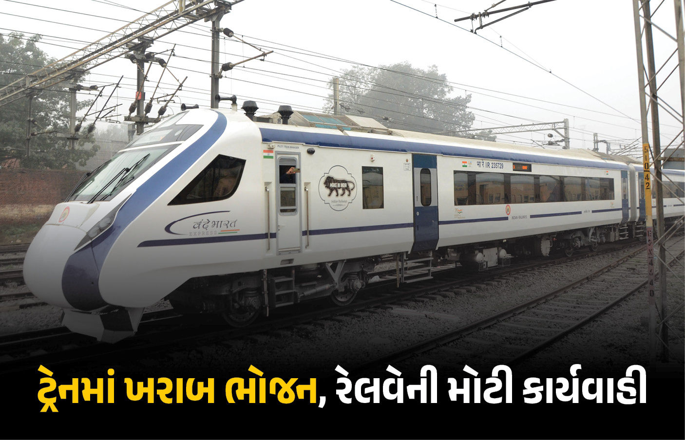 મળતા અહેવાલો મુજબ, 15 માર્ચ-2026ના રોજ પટણાથી ટાટાનગર જતી વંદે ભારત એક્સપ્રેસ ટ્રેન નંબર-21896ના એક મુસાફરે ભોજનની ગુણવત્તા મુદ્દે ફરિયાદ નોંધાવી હતી, જેને રેલવેએ ગંભીરતાથી લીધી છે અને તપાસ કર્યા બાદ કાર્યવાહી કરી છે. રેલવેએ IRCTCને 10 લાખ દંડ અને સંબંધિત સર્વિસ પ્રોવાઈડર પર 50 લાખનો દંડ ફટકાર્યો છે. આ ઉપરાંત તે કંપનીનો કોન્ટ્રાક્ટ પણ સમાપ્ત કરી દેવાનો આદેશ અપાયો છે.