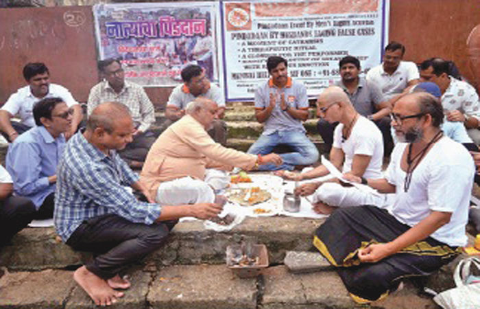 હેડીંગ વાંચીને આશ્ચર્ય થાય તે સ્વભાવિક છે. પરંતુ આ હકીકત છે. પત્નીથી ત્રસ્ત અને ભરણપોષણના મોટા દાવાઓથી અનેક લોકો પાયમાલ થઇ ગયા છે. શ્રાધ્ધના દિવસો હવે પુરા થવા આવ્યા છે. સોમવારથી નવરાત્રી શરૂ થઇ રહી છે. શ્રાદ્ધના દિવસોમાં પૂર્વજોને યાદ કરીને કટુંબીજનોએ વિધિસર તેમની વંદના કરી છે, પિંડદાન કર્યું છે, પરંતુ મુબંઇના વાલકેશ્વરમાં તો હયાત પત્નીઓનું પિંડદાન કરીને કેટલાક પત્ની પિડીત પુરુષોએ લોકોનું ધ્યાન ખેંચ્યું છે. અહીં પિતૃ તર્પણની વાત નથી પણ પત્નીથી ત્રસ્ત પુરુષોએ હયાત પત્નીનું પિંડ દાન કરીને દર્શાવ્યું છે કે પોતાની પત્ની દ્વારા અપાતા ત્રાસથી તે તેઓ એટલી હદે ત્રાસી ગયા છે કે તેમનું જીવતે જીવ શ્રાદ્ધ કરવા તૈયાર થઇ ગયા છે.