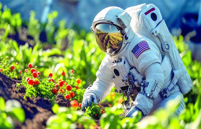 અંતરિક્ષમાં આ કાર્ય ક૨વાની શરૂઆત ૨૦૨૩ના એપ્રિલમાં આઈ.એસ.એસ. દ્વારા અંતરિક્ષમાંથી પૃથ્વી પર ટામેટાં લાવવાથી થયો. આ ઉપરાંત ૧૯૭૧માં સોવિયેત યુનિયનના સેલ્યુત-૧ ૫૨ ડુંગળી ઉગાડવાનો પ્રયત્ન કરવામાં આવ્યો હતો. ચંદ્ર પર વનસ્પતિ ઉગાડવાનો ચીનનો પ્રયાસ ઝાઝી સફળતાને પામ્યો નહીં, પરંતુ છેક ૧૯૭૩થી માંડીને અત્યાર સુધી જુદાં જુદાં અવકાશ માટેનાં મિશનોમાં જુદાં જુદાં છોડ ઉગાડવાનો પ્રયાસ થયો છે. જેમાં કપાસ, પાલક, બ્રોકોલી, સોયાબીન અને છેક સૂર્યમુખી ઉગાડવાના પ્રયાસ પણ થયાં છે.