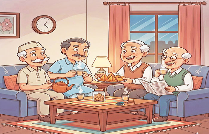 હતાશાના દિવસો આનંદમાં અને વૃધ્ધત્વને સ્થાને યુવાની જાણે પાછી ફરી હતી ! નિત્યાનંદજી સાથે મિત્રોના સહવાસથી ચૌદ નંબરના બંગલાની સકલ જ બદલાઈ ગઈ. ખંઢેર જેવા દેખાતા બંગલામાં રંગરોગાન થયું. ઉપરના રૂમમાં જૂના પંખાની જગ્યાએ નવા પંખા લાગ્યા. બંગલાના વેરાન જેવા કમ્પાઉન્ડે બગીચાનું સ્વરૂપ ધારણ કર્યું. પરિસરમાં સાંજના સમયે હીંચકા પર નિત્યાનંદજી બેઠા હોય. સામે ખુરશી ઢાળી લંગોટિયા મિત્રો બેઠા હોય. સોસાયટીના સિનિયર સિટીજનો પણ અહીં જોવા મળતાં. પરિસરમાં સાંજે બુઝર્ગોની મહેફિલ જામતી. દિવાળીની રાતે અહીં ફટાકડા ફૂટતા, ધૂળેટીના દિવસે રંગ