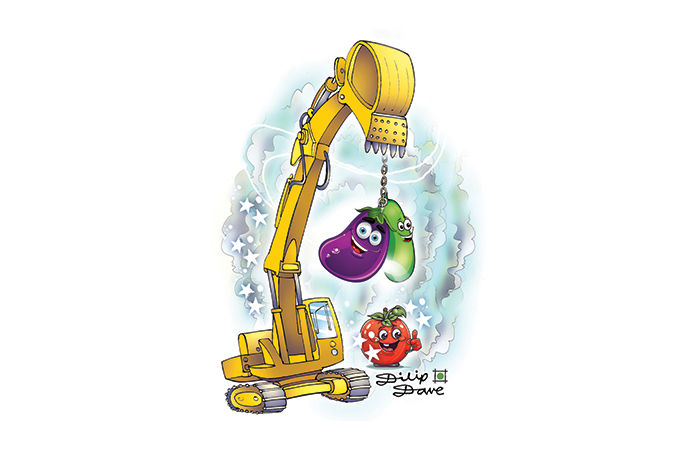 એણે બચેલી સરગવાની સીંગ ફેંકી બુલડોઝર ઉપર