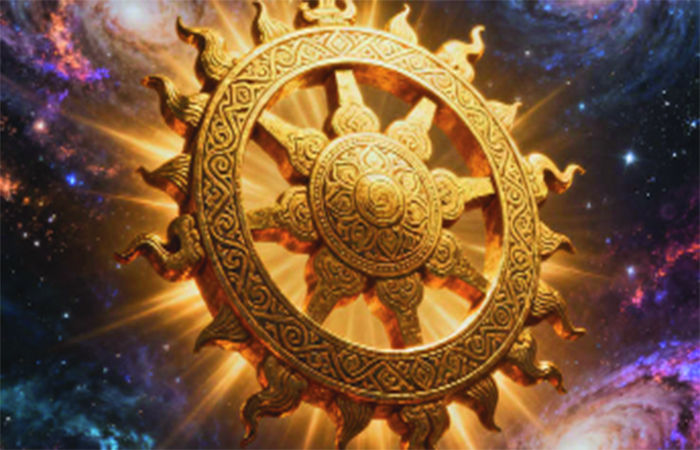 સમસ્ત બ્રહ્માંડ એક ચક્ર છે. સમયરૂપી ચક્રને આધીન થઈને સઘળું ફર્યા રાખે છે. યુગ બદલાતાં રહે છે, ઋતુઓનું આવનજાવન ચાલુ રહે છે, કલ્પો બદલાતાં રહે છે, નવી સૃષ્ટિનું સર્જન અને સંહાર અવિરતપણે ચાલ્યા રાખે છે. ભગવાન વિષ્ણુએ આ નિત્ય પરિવર્તનશીલ અને ગતિશીલ સમયને ચક્ર સ્વરૂપે પોતાના હાથ પર ધારણ કર્યો છે. વિધાતા બનીને તેઓ અવનવા બ્રહ્માંડોના સર્જન અને વિનાશ માટે કારણભૂત છે. આમ છતાં, તેઓ સ્વયં અચળ-અવિનાશી-અજર-અમર પરમાત્મા છે. ગતિશીલ સમયને ચક્ર સ્વરૂપે ધારણ કર્યો હોવા છતાં તેઓ સ્વયં ગતિમાન નથી. પરમમુક્ત અવસ્થામાં તેઓ પોતાના સ્વધામ - વૈકુંઠમાં શાશ્વતરૂપે સ્થિર છે, સ્થિતપ્રજ્ઞા છે. યોગબળ અને ભગવાનના નિત્યસ્મરણ સાથે જે આ ચક્રને ભેદવાનો પ્રયત્ન કરે છે, એ જીવાત્મા અંતત: પરમાત્મામાં જ વિલીન થઈ જાય છે, સદાકાળ માટે સમાહિત થઈ જાય છે. એ પછી એમને ફરી કોઈ નવા ચક્રમાં અથવા જીવન-મૃત્યુના વહેણમાં ફસાવાની આવશ્યકતા નથી રહેતી.