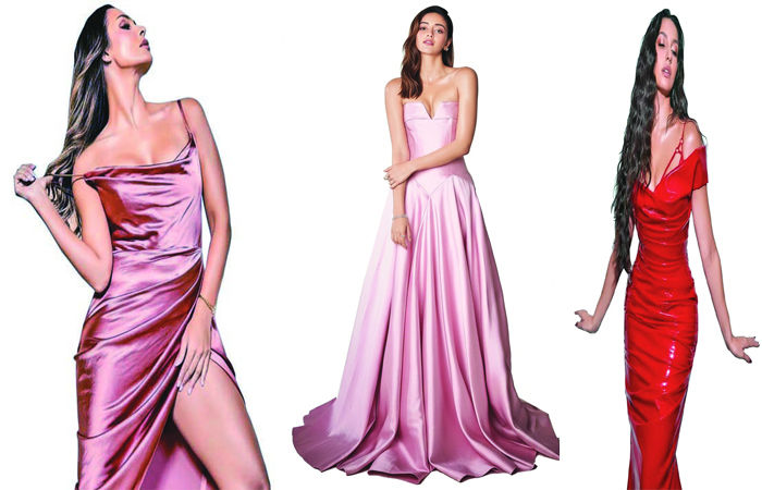 જ્યારે નોરા ફતેહીએ રાતા રંગનું માત્ર કટિ પર સફેદ બો ધરાવતું ઓફ શોલ્ડર શાટિન ગાઉન પહેરીને સાદગીનું સૌંદર્ય દર્શાવ્યું હતું. વાસ્તવમાં રાતો રંગ સ્વયં અનોખું આકર્ષણ જમાવતું હોવાથી તેમાં થોડી સાદી પેટર્ન અને નહીંવત એકેસેસરી પણ પૂરતી થઈ રહે. આ વાત ધ્યાનમાં લઈને જ નોરાએ એક્સેસરીમાં માત્ર બ્લેક પમ્પ્સ અને વિન્ટેજ ઈયરરિંગ્સ પહેર્યાં હતાં.