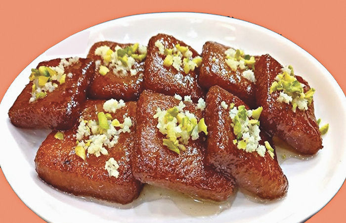 રીત : ખાંડમાં એક નાનો કપ પાણી નાખી અને તેને ઉકાળી બેતારી ચાસણી બનાવો. થોડા પાણીમાં કેસર ઓગાળી તેને ચાસણીમાં સારી રીતે ભેળવી દો. કેસર ન નાખવા ઇચ્છતાં હો તો ખાવાનો પીળો રંગ પણ વાપરી શકાય. એક થાળીમાં મેંદો, સોજી, મલાઈ અને ચાર મોટી ચમચી ઓગળેલું ઘી નાખી પાણીથી આ મિશ્રણનો કઠણ લોટ બાંધો. ત્યાર બાદ આ લોટના નાના-નાના લૂઆ કરી હાથથી એને બદામનો આકાર આપો. આ બદામને ગરમ ઘીમાં તળી ચાસણીમાં નાખો બે-ત્રણ કલાકમાં બદામ ચાસણી શોષી લેશે. ત્યાર બાદ મહેમાનોને પીરસો.