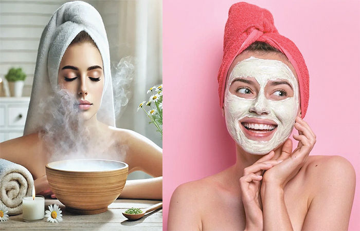 ચહેરાને નિયમિત રીજે ૫-૭ મિનીટ સુધી ગરમ પાણીનો શેક આપવોય જેથી ચહેરાની અંદરની ગંદકી દૂર થાય અને ચહેરો ગ્લો કરે.