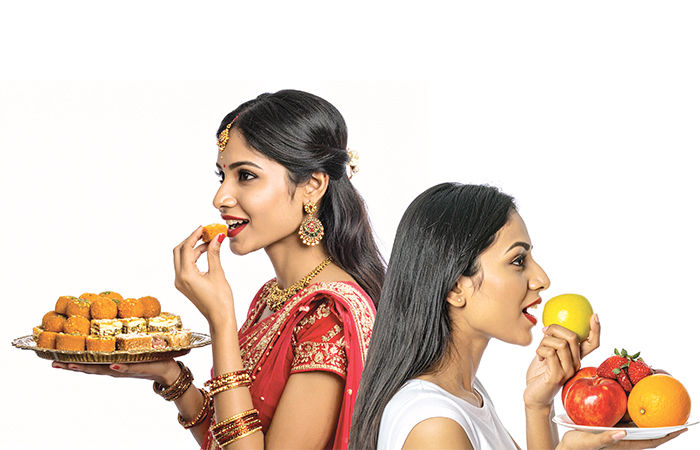 તહેવારોના દિવસો એટલે ખાઈ- પી, પહેરી- ઓઢીને મોજ માણવાનો સમય. તેમાંય દિવાળી આવે એટલે ઘરેઘરમાં મિષ્ટાન તેમ જ વિવિધ પ્રકારના નાસ્તાના ડબ્બા ભરાવા લાગે. વળી મિત્રો- સંબંધીઓને ત્યાંથી આવતાં બોક્સ જુદાં. અને ગુજરાતી પ્રજા ઘરે આવેલા મહેમાનોને આગ્રહ કરીને ન ખવડાવે એવું બને ખરું? આવી સ્થિતિમાં મોટાભાગના લોકોનું વજન બે- ત્રણ કિલો જેટલું તો વધી જ જાય. જો કે વજન વધ્યા પછી દિવાળીની મીઠાઈ અને તળેલાં નાસ્તા ખાવા બદલ પસ્તાવો પણ થાય. પરંતુ જો પહેલેથી થોડી તકેદારી રાખવામાં આવે તો ઉત્સવો પૂરાં થયા પછી વજન વધી જવાનો વસવસો કરવાની નોબત ન આવે.