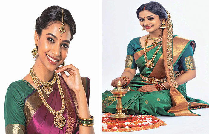 માનુષીઓના સૌભાગ્યના અલંકારો વિશેની જાણકારી રસ ઉત્પન્ન કરે તેવી છે. દક્ષિણ ભારતમાં નવવધુના ગળામાં 'તાલી' એટલે કે કોઈપણ પ્રકારનું પેન્ડન્ટ પહેરાવવામાં આવે છે. શરૂઆતમાં આ પેન્ડન્ટ પીળા દોરામાં પરોવીને પહેરાવવામાં આવતું હતું. પરંતુવખત જતાં પીળા દોરાનું સ્થાન સોનાની ચેઈને લઈ લીધું. તામિલનાડુની બ્રાહ્મણ સ્ત્રીઓ શંકુઆકારના બે પેન્ડન્ટ પહેરે છે. પરંતુ બ્રાહ્મણ સિવાયની અન્ય જાતિની નારીઓ આ પ્રકારનું એક જ પેન્ડન્ટ પહેરે છે. આ ઉપરાંત વાળમાં થાલાઈ સમાન, વાળના પાછળના ભાગમાં રાક્કોેડી અને ચોટલામાં ફૂલોન ડિઝાઈનથી બનાવેલું થૈરુક્વપ્પો પહેરવામાં આવે છે. માથા ઉપર સૂરજ અને ચંદ્રની આકૃતિવાળું ઘરેણું પહેરવામાં આવે છે. સ્વર્ગમાં વસતા દેવી-દેવતાઓ અને પૂર્વજોના આશીર્વાદ માટે આ દાગીના પહેરવામાં આવે છે. આ ઉપરાંત બ્રાહ્મણ કોમની તામિલ સ્ત્રીઓ ઓડ્ડિયાનમ એટલે કે સોનાનો કમર પટ્ટો પહેરે છે. આ કમર પટ્ટાની મધ્યમાં રત્ને મઢ્યું પેન્ડન્ટ હોય છે. અથવા તો દેવીઓની આકૃતિઓ હોય છે. તામિલનાડુની દરેક સૌભાગ્યવતી નારી નાકની બંને બાજુએ નથ પહેરે છે.
