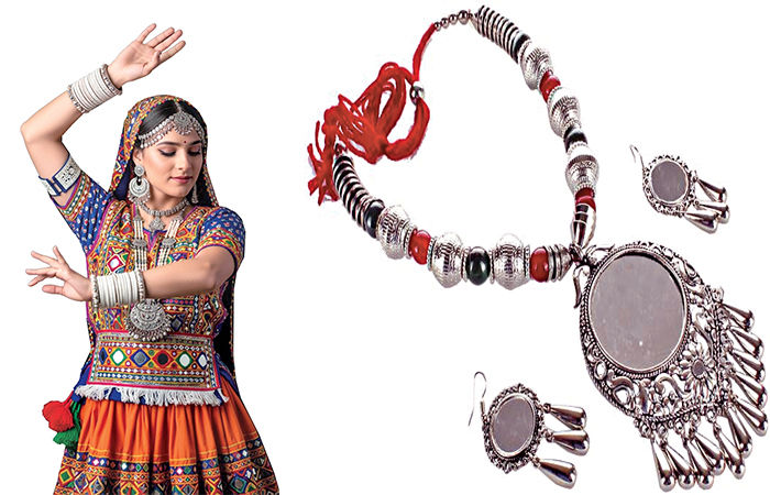 નવરાત્રિમાં યુવક-યુવતીઓ ભિન્ન ભિન્ન પ્રકારના ડ્રેસ, આભૂષણો પરિધાન કરે છે. બદલાતા જમાનામાં યુવક-યુવતીઓ, સ્ત્રીઓની બદલાતી પસંદને કારણે નવા નવા આભૂષણોની બોલબાલા વધી છે પરંતુ નવરાત્રિના સમય દરમિયાન ચમકતી કાળી આભાવાળાં ઓક્સિડાઈઝ્ડ આભૂષણ ખૂબ પસંદ કરવામાં આવે છે. આ આભૂષણો નવરાત્રીમાં માત્ર યુવતીઓ જ નહીં હવે તો યુવકો પણ ધારણ કરી રહ્યા છે.