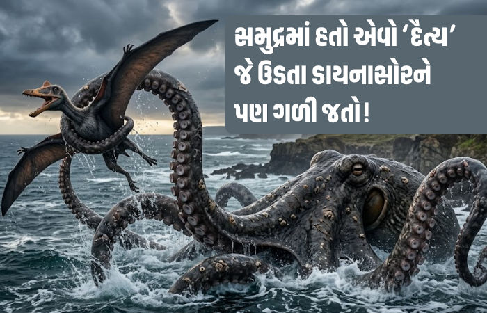 એક દૃશ્યની કલ્પના કરોઃ સમુદ્રની ઊંડાઈમાં એક આઠ-પગો વિકરાળ રાક્ષસ રહે છે. આકાશમાં ઊંચે ઉડતા ડાયનાસોર સમુદ્ર સપાટી નજીક આવે છે કે તરત જ પેલા રાક્ષસની લાંબી-લાંબી ભુજાઓ સમુદ્રની બહાર નીકળે છે, ડાયનાસોરને જકડી લે છે અને પછી એને સમુદ્રના પાણીમાં ખેંચી લઈને ખાઈ જાય છે. ડરામણું લાગે એવું આ દૃશ્ય હોલિવુડની કોઈ બિગ બજેટ ફિલ્મનું VFX દ્વારા બનાવાયેલું સીન નથી, પણ દૂરના ભૂતકાળમાં ધરતી પર આકાર લેતી હકીકત છે.