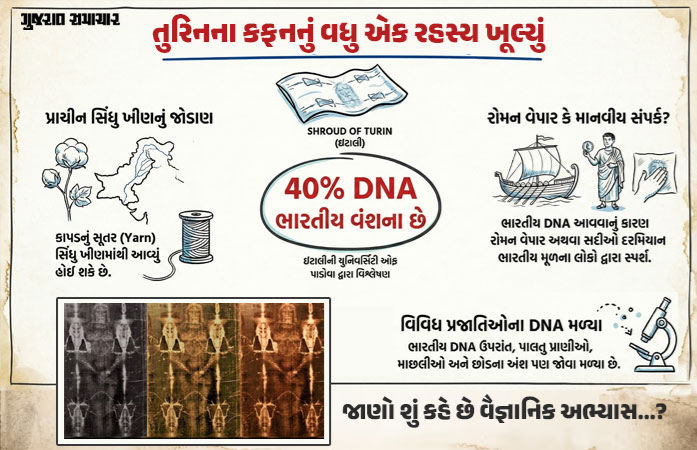 - બીજી શક્યતા: આ દરમિયાન ભારતીય મૂળના લોકો સદીઓ સુધી આ કફનના સંપર્કમાં આવ્યા હોય. કફનને સ્પર્શ થયો હોય, પ્રાર્થનામાં તેનો ઉપયોગ થયો હોય અથવા તેને એક સ્થળેથી બીજે ખસેડાયું હોય, ત્યારે ત્વચાના કોષો, લાળ વગેરે દ્વારા ડીએનએ ટ્રાન્સફર થયું હોઈ શકે.