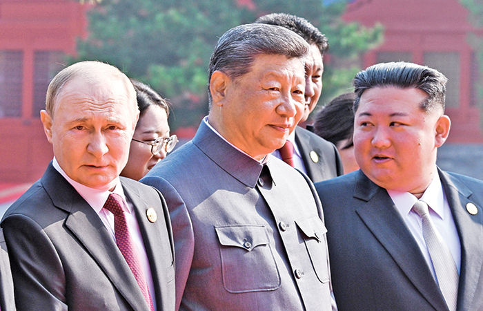 બે ઇજીંગમાં ગયા અઠવાડિયે ચીનનાં સુપ્રીમો જિનપિંગે રશિયાના પ્રમુખ પુતિન અને નોર્થ કોરિયાના સરમુખત્યાર કીમ જોંગ સહિત વિશ્વના કેટલાક નેતાઓની હાજરીમાં લશ્કરની ત્રણેય પાંખોનું શક્તિ પ્રદર્શન યોજ્યું હતું. આ પ્રસંગે પુતિન અને કીમ જોંગે સાવ અલગ રીતે બીજી કોઈ વ્યક્તિની હાજરી વગર એક નાના કોન્ફરન્સ રૂમમાં મીટીંગ યોજી હતી.આ મીટીંગ પૂરી થઈ તે પછી એક ભારે કૂતુહલ