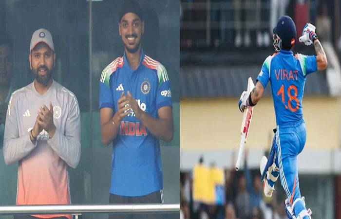 Arshdeep Singh On Rohit Sharma Celebration: રાંચીમાં વિરાટ કોહલીની ધમાકેદાર સદી બાદ ભારતીય ડ્રેસિંગ રૂમમાં રોહિત શર્મા કરતાં વધુ ખુશ કોઈ નહોતું. દક્ષિણ આફ્રિકા સામે કોહલીએ પોતાની 52મી વનડે સદી પૂરી કરવા માટે 135 રનની શાનદાર ઈનિંગ રમી. એક તરફ કોહલી મેદાન પર ઈમોશનલ સેલિબ્રેશન કરી રહ્યો હતો, ત્યારે બીજી તરફ પેવેલિયનમાં રોહિત શર્માનું રિએક્શન પણ જોવા જેવું હતું. આ દરમિયાન કેમેરામાં હિટમેન કંઈક કહેતો પણ દેખાયો હતો. ત્યારથી સોશિયલ મીડિયા પર લોકો પોત-પોતાના હિસાબે તેની બોડી લેંગ્વેજનું અર્થઘટન કરવાનો પ્રયાસ કરી રહ્યા છે. હવે આમાં અર્શદીપ સિંહે પણ ઝંપલાવ્યું છે.