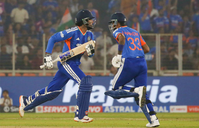 ભારતે 20 ઓવરમાં 5 વિકેટે 231 રન કર્યા હતા. સંજુ સેમસન: 22 બોલમાં 37 રન, અભિષેક શર્મા: 21 બોલમાં 34 રન, તિલક વર્મા: 42 બોલમાં 73 રન સૂર્યકુમાર યાદવ: 7 બોલમાં 5 રન હાર્દિક પંડ્યા: 25 બોલમાં 63 રન, શિવમ દુબે: 3 બોલમાં અણનમ 10 રન...