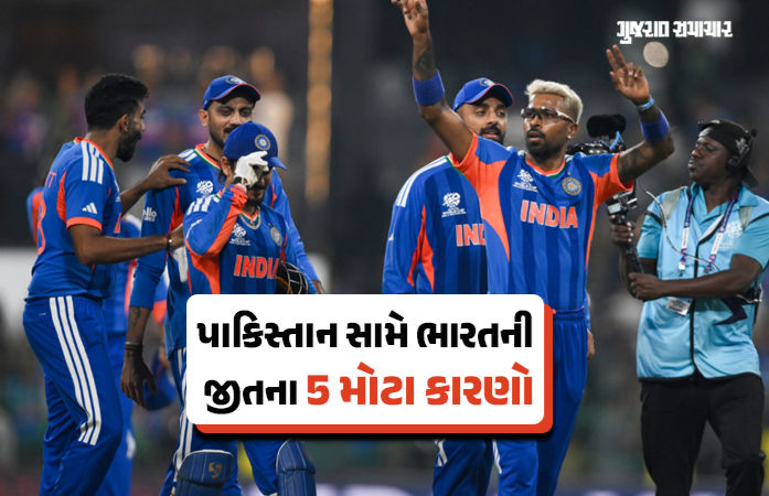 IND vs PAK: 15 ફેબ્રુઆરી રવિવારે કોલંબો આર. પ્રેમદાસા સ્ટેડિયમ ખાતે રમાયેલા ભારત પાકિસ્તાનના હાઈ-વોલ્ટેજ મુકાબલામાં ભારતીય ટીમે પાકિસ્તાનને 61 રને કારમી હાર આપી ICC મેન્સ ટી20 વર્લ્ડ કપ 2026ના સુપર-8 રાઉન્ડમાં એન્ટ્રી કરી લીધી છે. ભારતે આપેલા 176 રનના ટાર્ગેટ સામે પાકિસ્તાની ટીમ માત્ર 114 રનમાં જ ઓલઆઉટ થઈ ગઈ હતી. ટી20 વર્લ્ડ કપમાં પાકિસ્તાન સામે ભારતની આ 9 મેચમાં 8મી જીત છે. વર્લ્ડ કપમાં ભારતની આ સતત 11મી જીત છે (ગત વર્લ્ડ કપની 8 અને ચાલુ વર્લ્ડકપની 3 જીત), આ મેચમાં ત્રણ ગુજરાતી ખેલાડી જસપ્રીત બૂમરાહ, હાર્દિક પંડયા અને અક્ષર પટેલે બોલિંગમાં જોરદાર પ્રદર્શન કર્યું હતું.