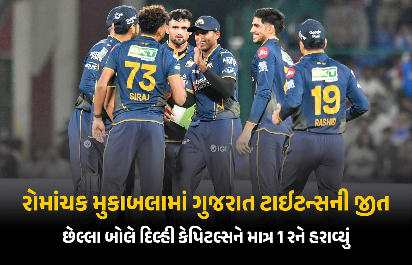 IPL 2026, Gujarat Titans vs Delhi Capitals : આઈપીએલ-2026માં આજે દિલધડક રમાયેલી મેચમાં ગુજરાત ટાઈટન્સે દિલ્હી કેપિટલ્સને હરાવી પ્રથમ જીત મેળવી છે. આજે અરુણ જેટલી સ્ટેડિયમ ખાતે રમાયેલી મેચમાં ગુજરાતે દિલ્હીને માત્ર 1 રનથી હરાવીને જીત નોંધાવી છે. ગુજરાતે પ્રથમ બેટિંગ કરીને 20 ઓવરમાં 4 વિકેટે 210 રન નોંધાવ્યા હતા. ગુજરાત તરફથી શુભમન ગિલ, વોશિંગ્ટન સુંદર અને જોશ બટલરે ફિફ્ટી ફટકારી હતી તો દિલ્હી તરફથી કે.એલ.રાહુલે ફિફ્ટી ફટકારી મહત્ત્વનું યોગદાન આપ્યું હતું. જોકે તેમ છતાં દિલ્હીનો માત્ર એક રને પરાજય થયો છે.
