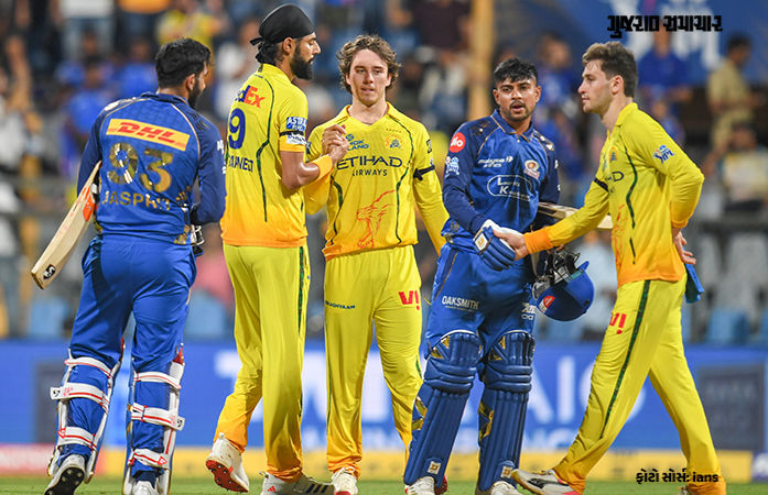 MI vs CSK: IPL 2026ની 33મી મેચમાં ચેન્નાઈ સુપર કિંગ્સે વાનખેડે સ્ટેડિયમમાં મુંબઈ ઈન્ડિયન્સને મોટા અંતરથી હરાવ્યું છે. મુંબઈએ ટોસ જીતીને પ્રથમ બોલિંગ કરવાનો નિર્ણય કર્યો હતો, પરંતુ ચેન્નાઈની તોફાની બેટિંગ અને ત્યારબાદ શાનદાર બોલિંગ સામે તેમની આખી ટીમ પડી ભાંગી હતી. CSKએ 20 ઓવરમાં 207 રનનો મજબૂત સ્કોર બનાવ્યો અને મુંબઈને 19 ઓવરમાં માત્ર 104 રનમાં સમેટી દીધું. આ સાથે ચેન્નાઈએ 103 રનથી સરળતાથી મેચ પોતાના નામે કરી લીધી. આ સિઝનમાં ચેન્નાઈ સુપર કિંગ્સની આ ત્રીજી જીત છે. આ સાથે મુંબઈ ઈન્ડિયન્સને IPL ઈતિહાસની સૌથી મોટી હારનો સામનો કરવો પડ્યો છે.