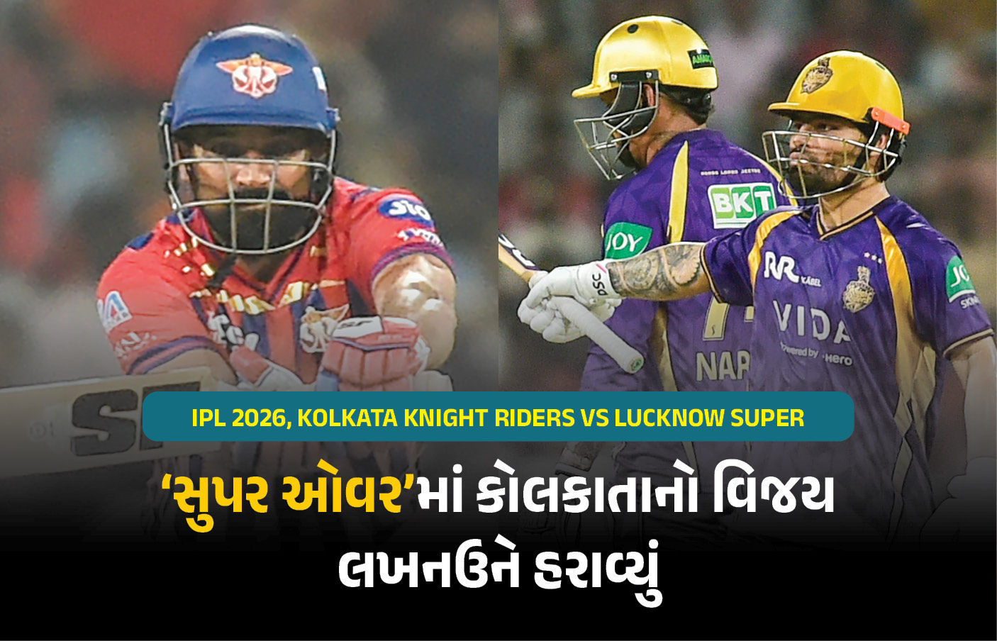 IPL 2026, Kolkata Knight Riders vs Lucknow Super Giants Super Giants : આઈપીએલ-2026માં આજે કોલકાતા નાઈટ રાઈડર્સ અને લખનઉ સુપર જાયન્ટ્સ વચ્ચે રમાયેલી મેચમાં ભારે રસાકસી જોવા મળી છે. લખનઉની ટીમના છેલ્લા ક્રમાંકે આવેલા બોલર મોહમ્મદ સામીએ સિક્સ ફટકારતા મેચ ટાઈ થયા બાદ સુપર ઓવર મેચ રમાઈ હતી, જેમાં કોલકાતાનો વિજય થયો છે. કોલકાતા પહેલા બેટિંગ કરીને 20 ઓવરમાં 7 વિકેટે 155 રન નોંધાવ્યા હતા, તો લખનઉએ પણ 20 ઓવરમાં 8 વિકેટે 155 રન નોંધાવા મેચ ટાઈ થયા બાદ સુપર ઓવર રમાઈ હતી, જેમાં કોલકાતની જીત થઈ છે.