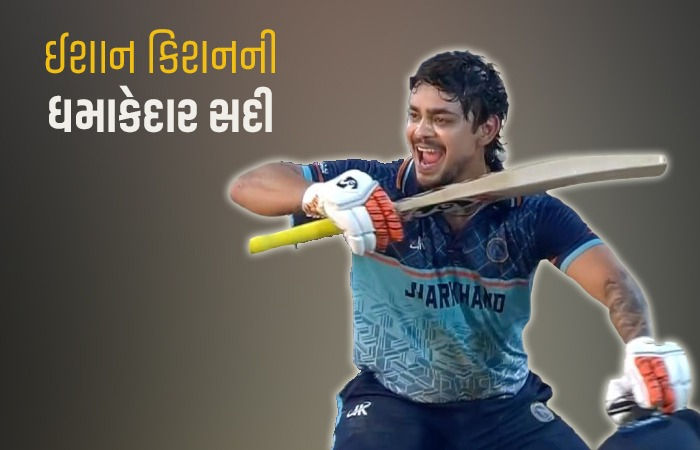 Vijay Hazare Trophy: ઝારખંડના કેપ્ટન ઈશાન કિશને બુધવારે વિજય હજારે ટ્રોફીમાં ધમાકેદાર સદી ફટકારીને ઈતિહાસ રચી દીધો છે. કિશને અમદાવાદના નરેન્દ્ર મોદી સ્ટેડિયમમાં કર્ણાટક સામે માત્ર 33 બોલમાં ધમાકેદાર સદી ફટકારી છે. આમ ઈશાન કિશનની સ્ટોરી માત્ર કમબેક નથી રહી, તે એક ઘોષણા બની ગઈ છે, જે સ્કોરબોર્ડ પર નહીં પરંતુ રેકોર્ડ બુકમાં નોંધાઈ છે. વિજય હજારે ટ્રોફીમાં ઉતરતા જ ઈશાન કિશને ધમાકો કર્યો છે.