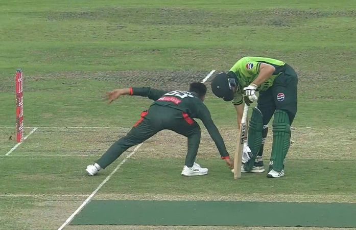 બોલ રોકવાના પ્રયાસમાં બોલર મેહદી હસન અને સલમાન આગા વચ્ચે ટક્કર થઈ હતી. આ ટક્કરને કારણે સલમાન ક્રીઝની બહાર રહી ગયો હતો. તકનો લાભ ઉઠાવી મેહદીએ બોલ ઉપાડીને તરત જ રન-આઉટની અપીલ કરી દીધી. સલમાને દલીલ કરી હતી કે ટક્કરને કારણે તે ક્રીઝમાં પહોંચી શક્યો નહોતો, પરંતુ બાંગ્લાદેશે અપીલ પાછી ખેંચી નહીં અને ત્રીજા અમ્પાયરે નિયમ મુજબ તેને આઉટ જાહેર કર્યો.