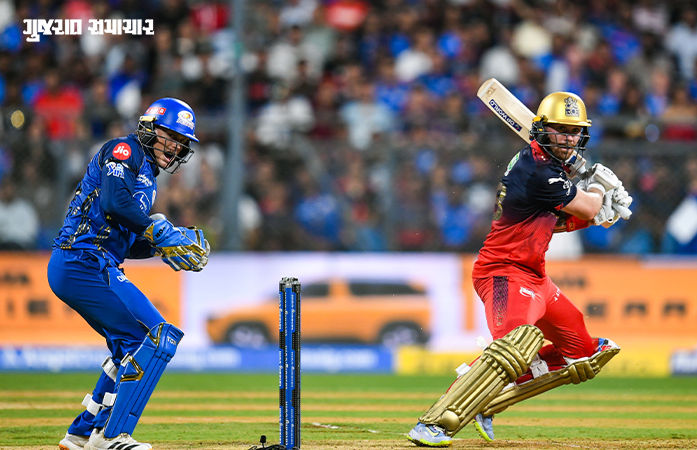 RCB Beats Mumbai Indians By 18 Runs: IPL 2026ની 20મી મેચ રવિવારે(12 એપ્રિલ) મુંબઈ ઈન્ડિયન્સ અને રોયલ ચેલેન્જર્સ બેંગલુરુ(RCB) વચ્ચે રમાઈ હતી. આ મેચ મુંબઈના વાનખેડે સ્ટેડિયમ પર યોજાઈ હતી. જેમાં ટોસ જીતીને મુંબઈએ પહેલા બોલિંગ કરવાનો નિર્ણય લીધો હતો. RCBએ મુંબઈ ઈન્ડિયન્સ સામે 4 વિકેટ ગુમાવીને 240 રન કર્યા હતા. જેમાં 5 વિકેટ ગુમાવી મુંબઈ ઈન્ડિયન્સે 222 રન કરતાં RCBએ જીત હાસલ કરી છે.
