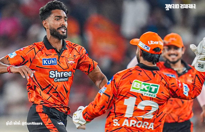 Praful Hinge Bowling: આજે સોમવારે IPL 2026ની 21મી લીગ મેચમાં સનરાઇઝર્સ હૈદરાબાદ અને રાજસ્થાન રોયલ્સ વચ્ચે ટક્કર થઈ, ઈશાન કિશનની કેપ્ટન્સીમાં હૈદરાબાદે પ્રથમ બેટિંગ કરતા 20 ઓવરમાં 6 વિકેટે 216 રન બનાવ્યા હતા. જીત માટે રાજસ્થાનને 217 રનની જરૂર હતી પણ કેપ્ટન રિયાન પરાગની ટીમ 159 રનમાં ઓલઆઉટ થઈ ગઈ હતી. સનરાઇઝર્સ હૈદરાબાદનો આસાનીથી 57 રને વિજય થયો. SRHના બોલરોમાં પ્રફુલ હિંગે અને સાકિબ હુસૈનએ 4-4 વિકેટ તો એશાન મલિંગાએ બે વિકેટ ઝડપી રાજસ્થાન રોયલ્સની બેટિંગ લાઈનઅપ સંપૂર્ણ પણે ધ્વસ્ત કરી દીધી હતી.