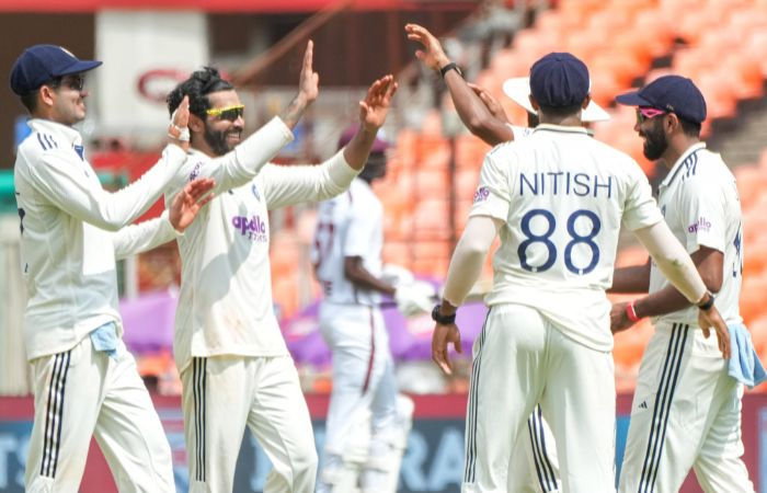 ટોસ જીતીને પહેલા બેટિંગ કરવા ઉતરેલી ઇન્ડિઝની ટીમને ભારતે બે સેશનમાં માત્ર 162 રનથી પછાડી દીધી હતી. મોહમ્મદ સિરાજે આ મેચમાં 4 વિકેટ લીધી તો જસપ્રીત બુમરાહે ત્રણ વિકેટ ઝડપી. ત્યારબાદ બેટિંગ કરવા ઉતરેલી ટીમ ઇન્ડિયાએ 5 વિકેટના નુકસાને 448 રન બોર્ડ પર ફટકાર્યા અને 286 રનની લીડ મેળવી હતી. ભારત માટે કે એલ રાહુલ, ધ્રુવ જુરેલ અને રવીન્દ્ર જાડેજાએ સેન્ચુરી ફટકારી. ઇનિંગમાં જાડેજા નોટઆઉટ રહ્યો, ત્યારે કૅપ્ટન શુભમન ગિલે હાફ સેન્ચુરી ફટકારી. ત્રીજા દિવસે વેસ્ટ ઇન્ડિઝની ટીમ 146 રન પર ઓલઆઉટ થઈ હતી.