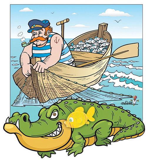 એક હતી નદી. એમાં રહેતો હતો મોટો મગર. નદીમાં ઘણી બધી માછલીઓ પણ રહેતી, એમાં એક નાની માછલી એવી તો સુંદર કે ન પૂછો વાત. પાછી એ ચપળ પણ એવી જ હો! કોઈ માછીમાર જાળ નાખી માછલી પકડવા આવે તો એ સરરર... કરતી એવી તો ત્યાંથી સરકી જાય, ને પાણીમાં ડૂબકી મારી ઊંડે ઊતરી જાય કે માછીમારની જાળમાં એ ફસાય જ નહીં. જાળ એટલે માછલી, પંખી વગેરેને પકડવાની છૂટા છૂટા આડાઅવળા દોરા ગૂંથીને બનાવેલી જાળી, જેમાં વચ્ચે વચ્ચે ઝીણાં ઝીણાં કાણાં હોય, જેમાં માછલી, પંખી વગેરે ફસાઈ જાય.