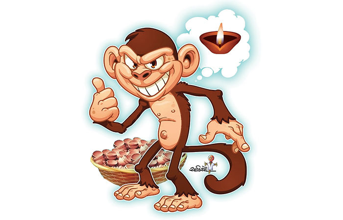 - વાંદરાભાઈએ નાક પર હાથ ફેરવ્યો, ઘૂળ ખંખેરીને બોલ્યા, 'હું તો જંગલનો હીરો છું! આ સઘળો દીવાળીનો સામાન મારી મહેનતથી મળ્યો.'