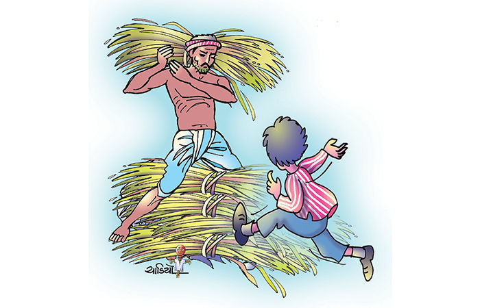 જેવો રામજી બીજા ખેડૂતના ખેતરમાં અનાજ કાપવા માટે ગયો કે ગોપાલ તરત કહ્યુ,'પિતાજી, થોભો.'