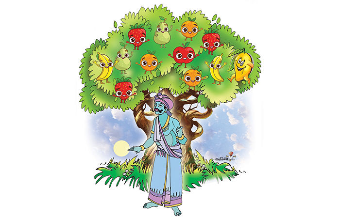 ત્યાં અચાનક રાજાને એક અનોખું વૃક્ષ દેખાયું. એ વૃક્ષ પર જાતજાતનાં ફળ લાગેલાં હતાં - કેરી, જામફળ, સફરજન, ચેરી, ચીકુ, બોર, સીતાફળ, દ્રાક્ષ... જાણે બધાં ફળો એક જ વૃક્ષ પર ખીલી ઊઠયાં હોય!