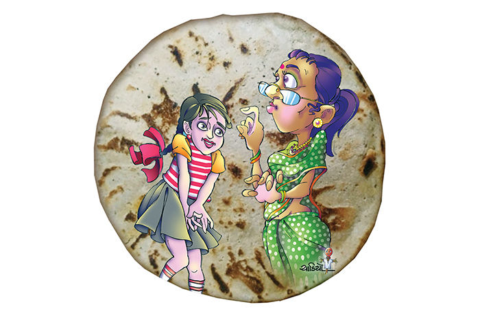 આ રોટલો એક ચૂલા પર તાવડીમાં શેકવામાં આવ્યો હતો, જે પાલી નામની એક નાની છોકરીની