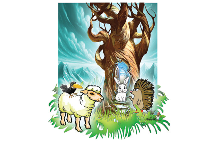 ઝાડ ઉપર એકલા રહેતા કાગડાને આ સસલા, શાહુડી અને ઘેટાની દોસ્તી જોઈ ઈર્ષા આવે. તે સસલાને હેરાન કરવા જાય, પણ સસલું તો ભારે ચપળ. એ તો ફટ દઈને કૂદતું ભાગીને ઝાડી ઝાંખરાંમાં છુપાઈ જાય. કાગડો શાહુડીના ભાલા જેવા કાંટા જોઈને જ તેને હેરાન કરવાનું નામ ના લે. હવે રહ્યાં ઘેટાભાઈ. એ પાછા સાવ ભોળા.